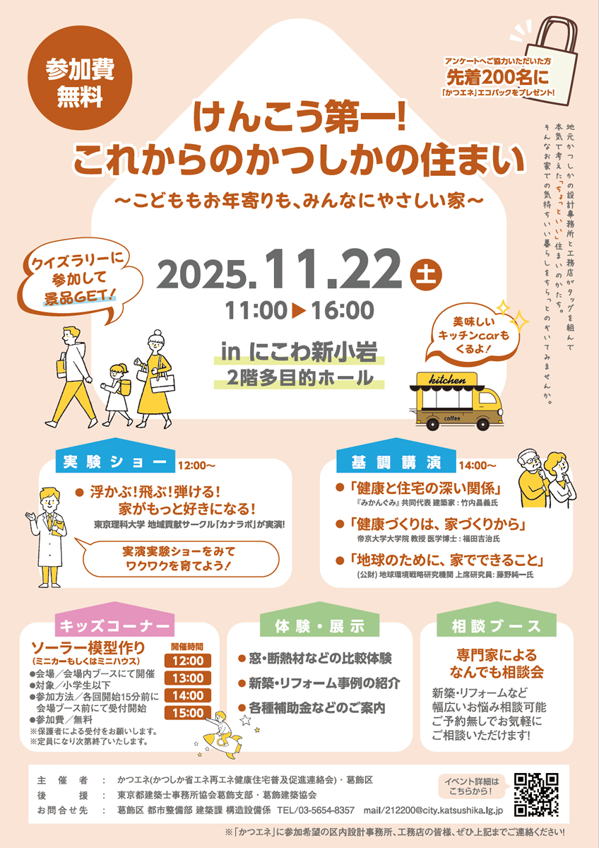 「にこわ新小岩(新小岩地域活動センター)」(葛飾区西新小岩4)で11月22日、省エネ健康住宅普及イベント「けんこう第一!これからのかつしかの住まい」が開催される。