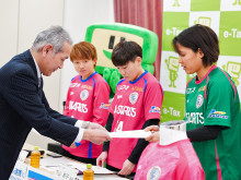葛飾区を拠点とするサッカーチーム「南葛SC」の女子チーム「南葛SC WINGS」の選手が2月5日、ウィメンズパル(葛飾区立石5)でスマートフォンを使った確定申告書の作成体験を行った。