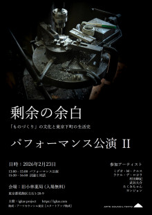 アートイベント「余剰の余白~『ものづくり』の文化と東京下町の生活史」第2期のアートパフォーマンスが2月23日、旧小林薬局(葛飾区立石1)で行われる。主催は、地域のリサーチに基づき、「ものづくり」「日々の労働」「都市の記憶」をテーマにしたサイト・スペシフィック(場所固有)なアートパフォーマンスを行う「igkas(イグカス) project」。