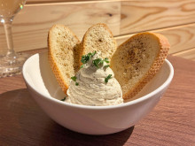 「お酒と魚介を気軽に楽しめる店」をコンセプトとした店内は、カウンターとテーブル合わせて10席を用意。季節ごとに産地を変え提供する生ガキや、旬のホタルイカを使った酢の物(800円)などに加え、ボイルしたカキとクリームチーズで作ったディップを「カリカリに」焼き上げたトーストに添えた「牡蠣(かき)とクリームチーズディップ メルバトースト付」(500円)などの前菜も提供する。