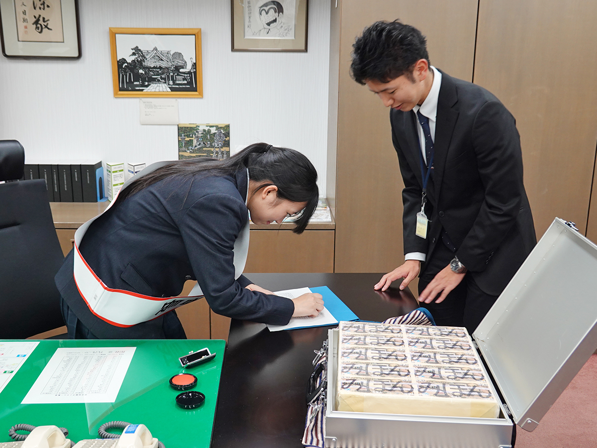 葛飾税務署で12月10日、「税についての作文」で葛飾税務署長賞を受賞した中学生が「一日税務署長」を務め、署内の視察や模擬業務などを行う「一日税務署長イベント」が開かれた。