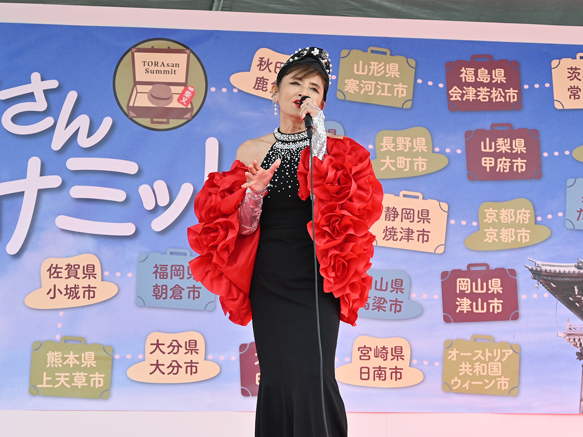 「寅さんサミット2025」トークショーの最後に「愛の讃歌」を披露する志穂美悦子さん