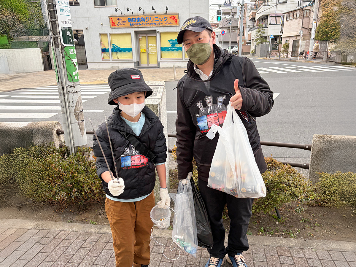「清走中 葛飾編」ごみ拾いを行う親子