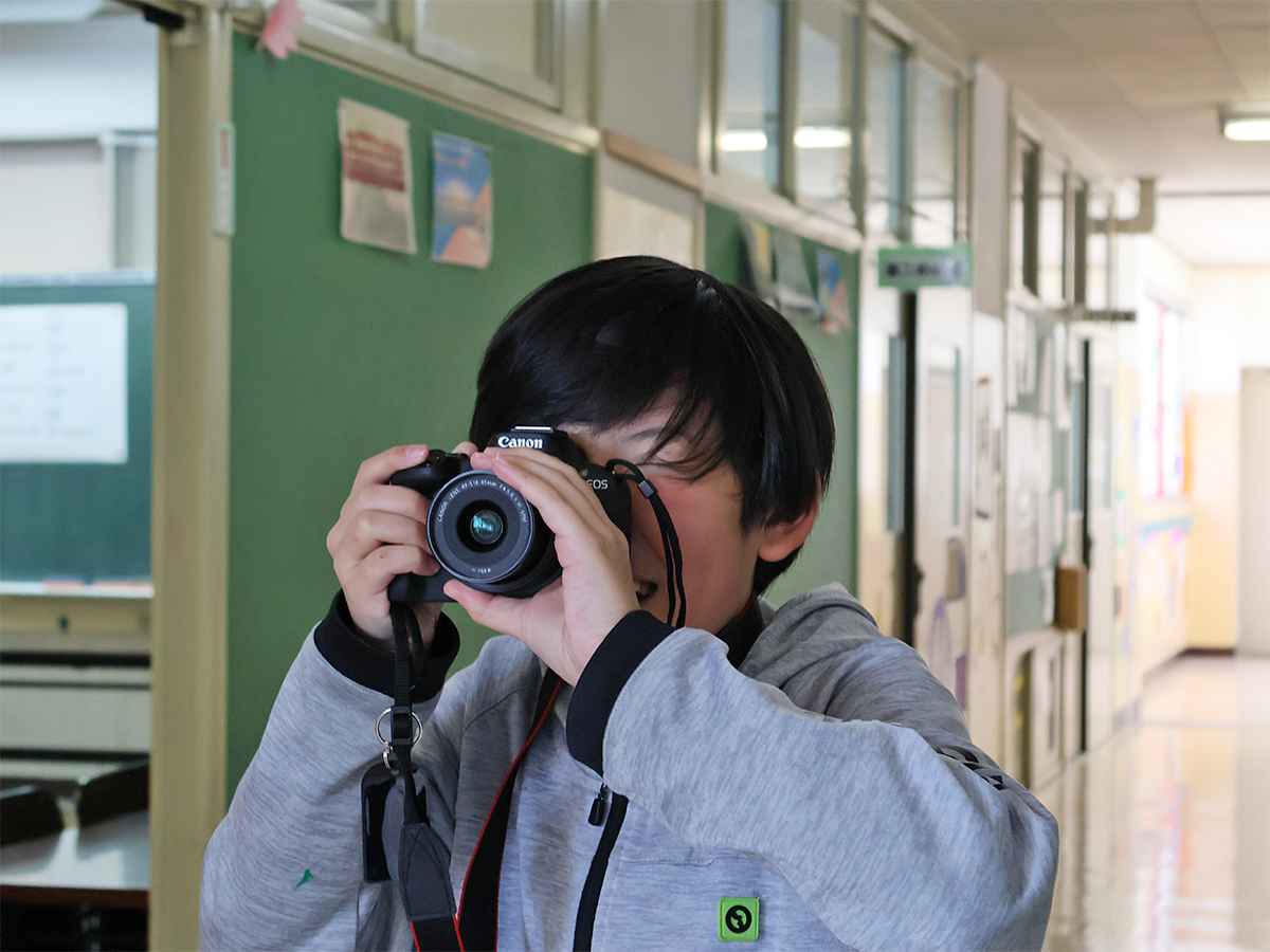 「校舎の思い出プロジェクト」壁画撮影を楽しむ児童
