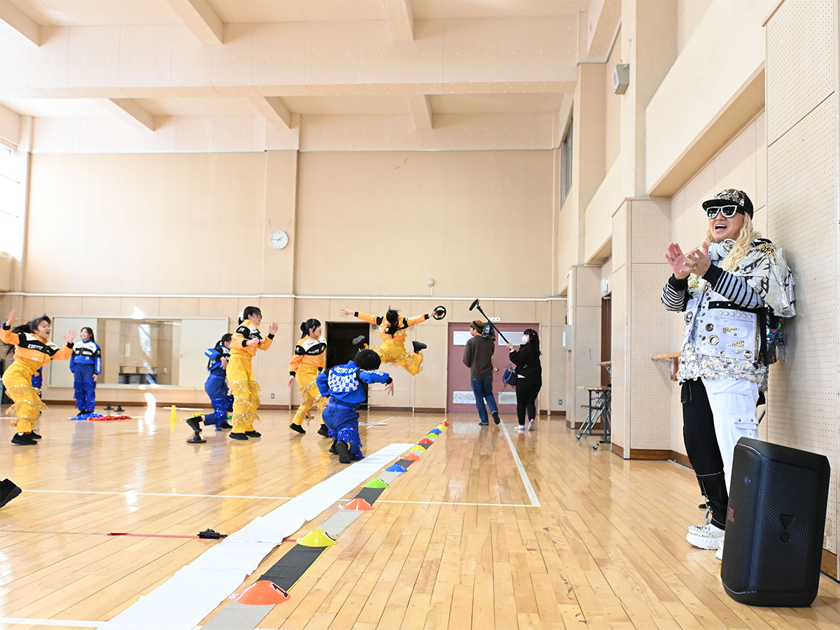 葛飾野高校ダンス部の練習を見守るDJ KOOさん