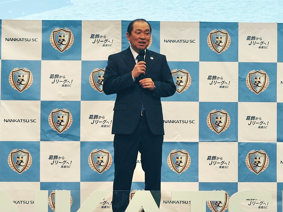 葛飾区を拠点とするサッカーチーム「南葛SC」が3月16日、テクノプラザかつしか(葛飾区青戸7)で「南葛SC 2026キックオフカンファレンス&パートナーパーティー」を開いた。